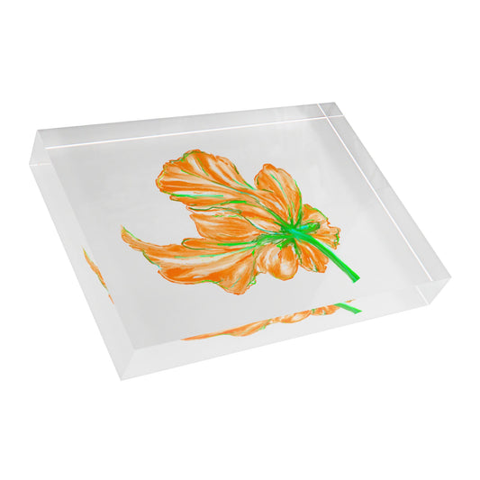 Art Decor Vibrant Tulips Acrylic Art Block Orange