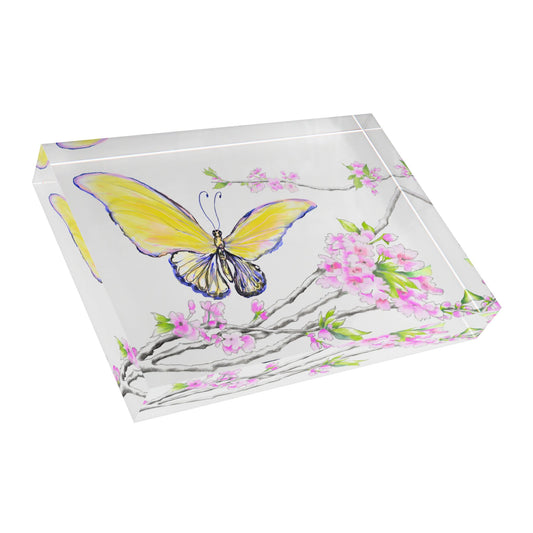 Art Decor Blossom Whirl Acrylic Block Yellow