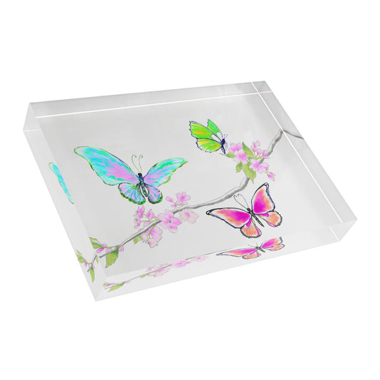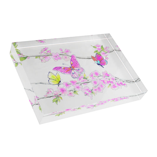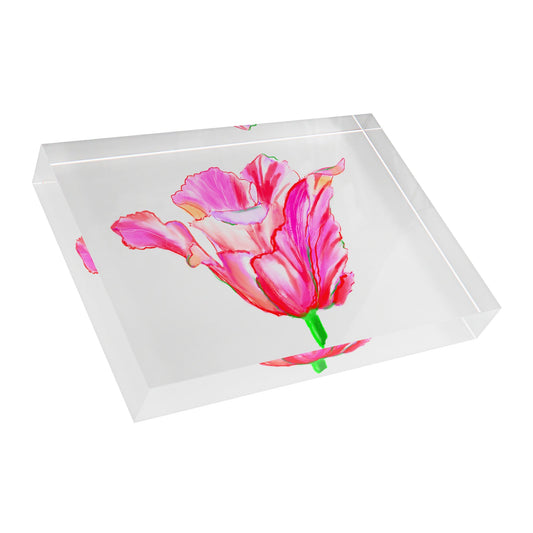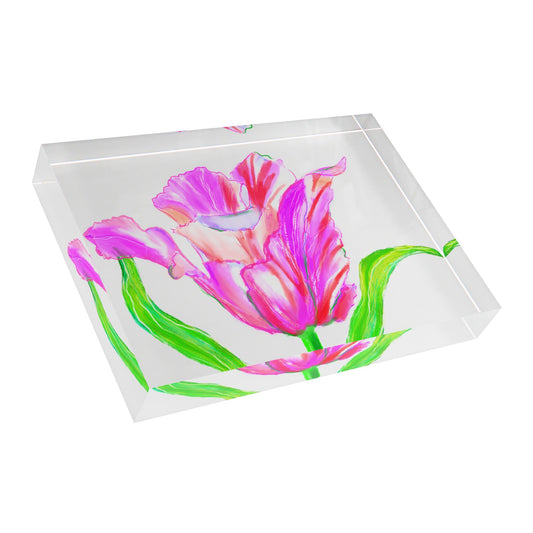 Art Decor Dancing Tulips Acrylic Art Block Pink