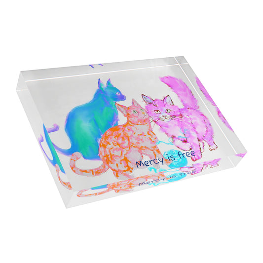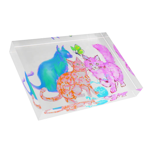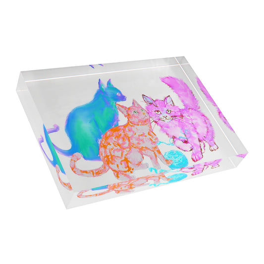 Wall Art Colorful Cats & Dogs Acrylic Art Block 3 Cats Blue, Orange ,Pink-Mercy is free