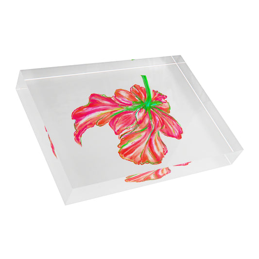 Art Decor Tulip Love Acrylic Art Block with Raspberry tulip