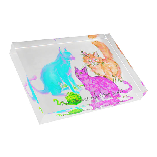 Wall Art Colorful Cats & Dogs Acrylic Art Block 3 Cats Aqua, Pink, Green- Providence runs the world