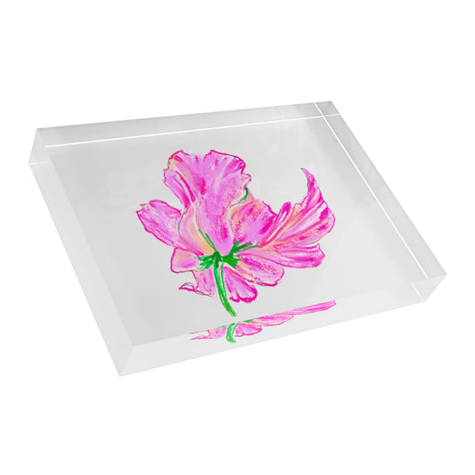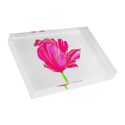 Art Decor Dancing Tulips Acrylic Art Block Raspberry Pink