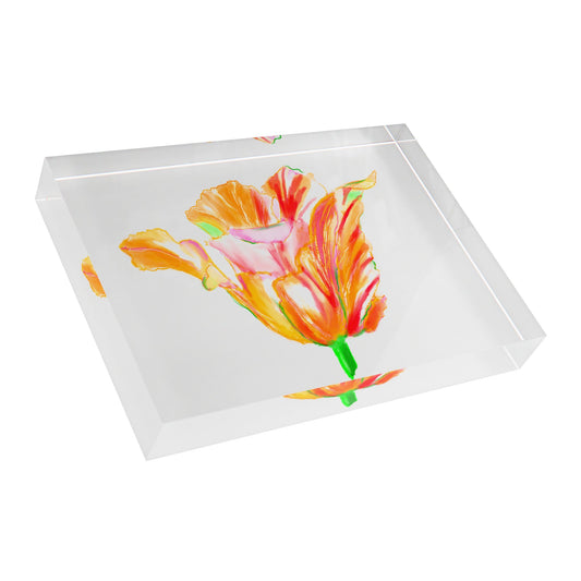 Art Decor Dancing Tulips Acrylic Art Block Red Orange