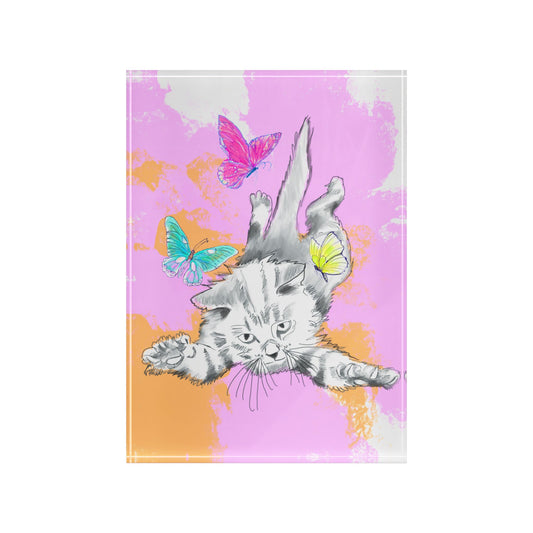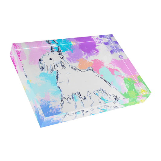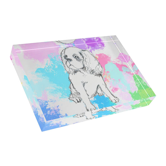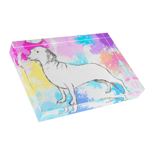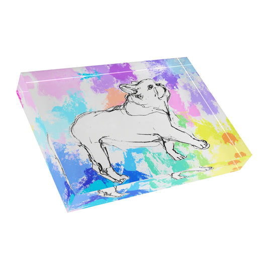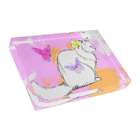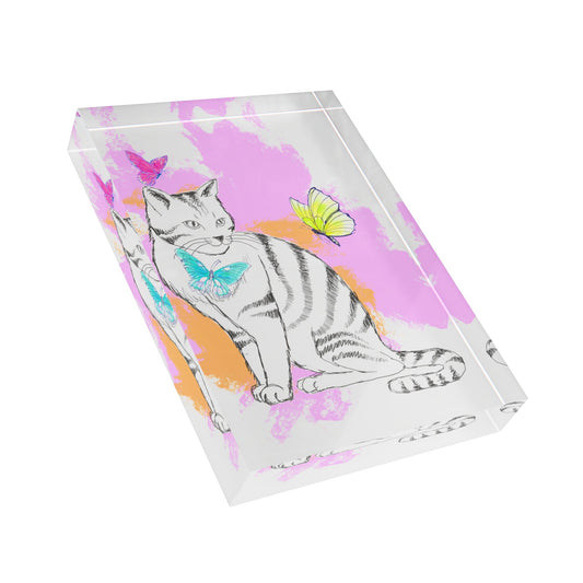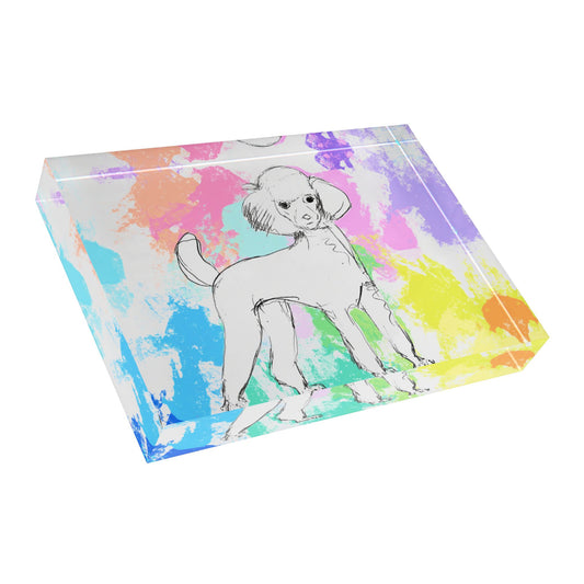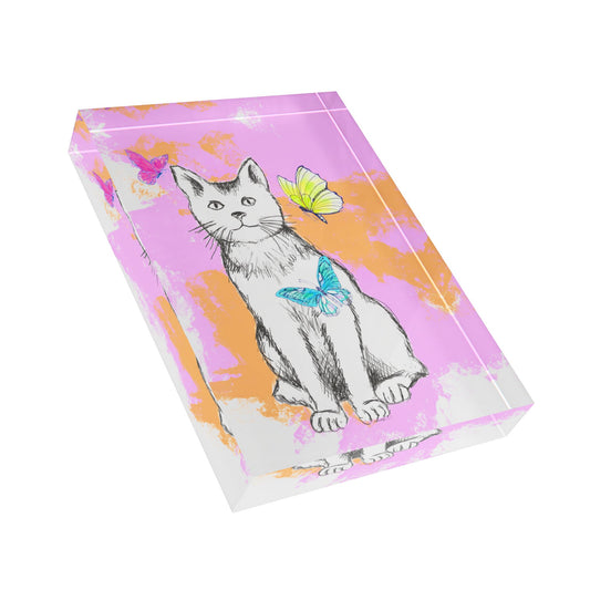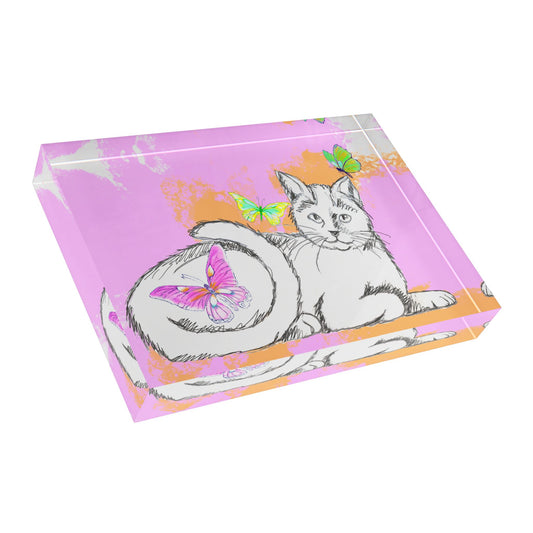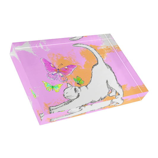 Art Decor Colorful Cats & Dogs Acrylic Art Block in Orange and Yellow "Grace is but glory begun"
