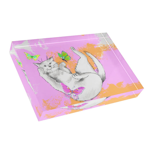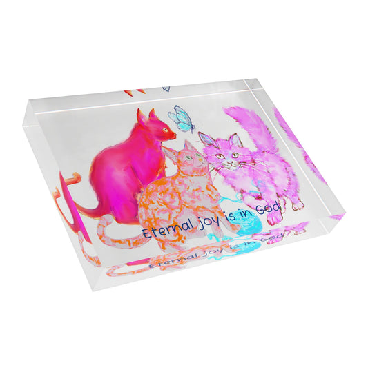 Art Decor Colorful Cats & Dogs Acrylic Art Block Raspberry, Orange, and Pink "Eternal joy is in God"