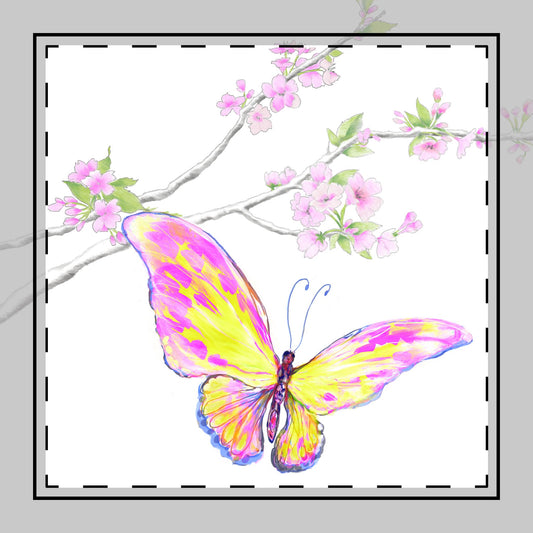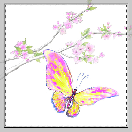 Butterfly Blossom Whirl Poly Twill Napkin, Yellow/Pink, Fabric Background Bright White, #3