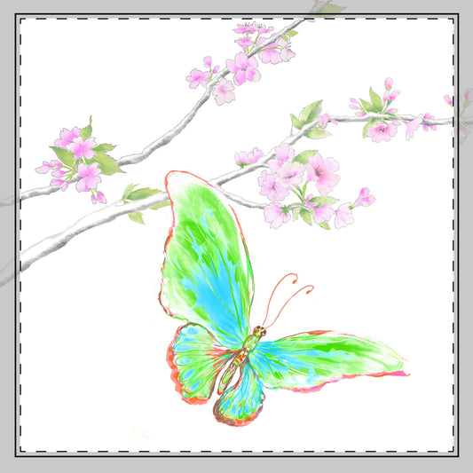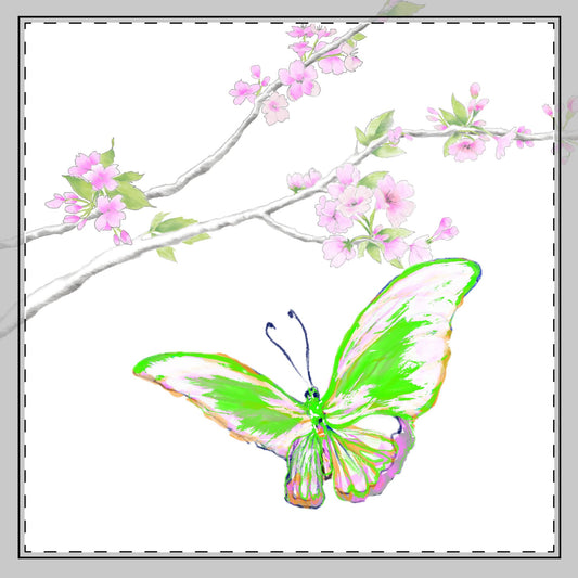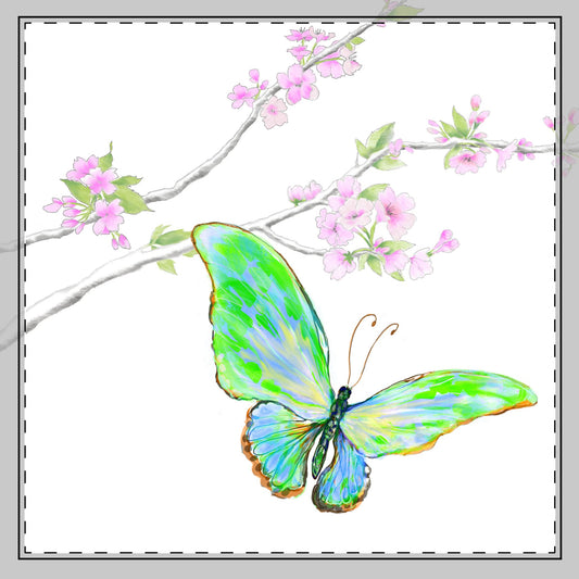Butterfly Blossoms Glide Poly Twill Napkin in Green, Background Brighter White, #9