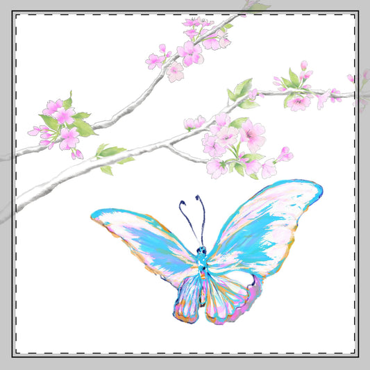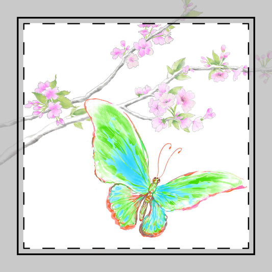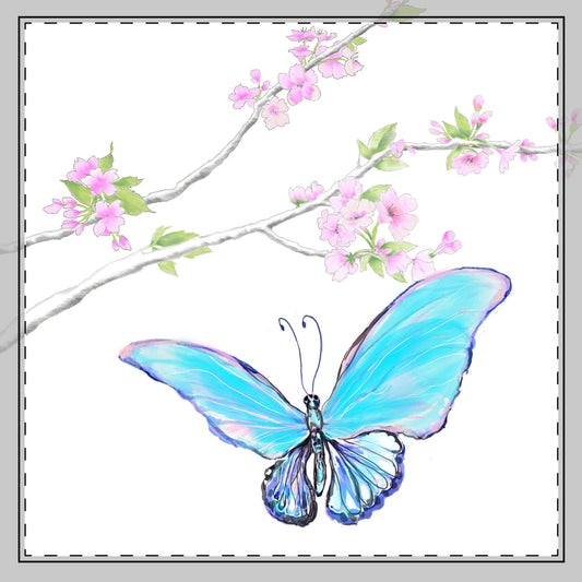 Butterfly Blossoms Glide Poly Twill Napkin in Aqua , Whiter Background, #1