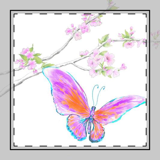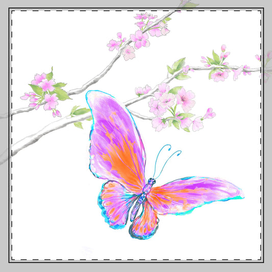 Butterfly Blossoms Glide Poly Twill Napkin in Orange& Purple, Background Brighter White ,#10