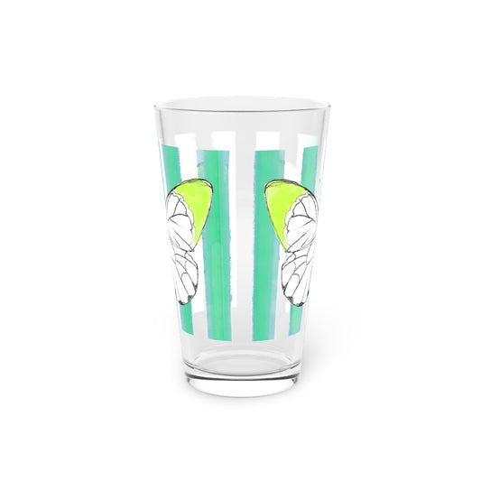 Butterfly Chroma Pint Glass in Lime with Aqua Stripes, 16oz