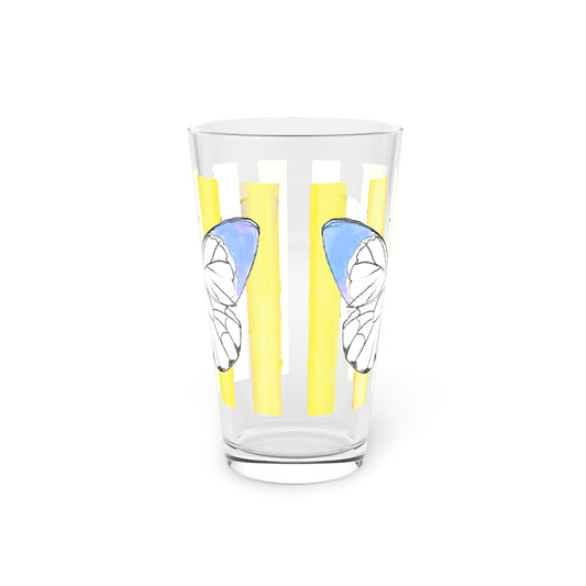 Butterfly Chroma Pint Glass in Periwinkle Blue with Yellow Stripes, 16oz