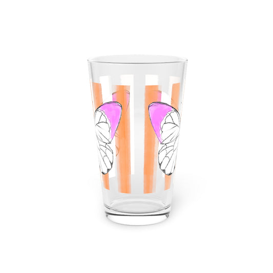 Butterfly Chroma Pint Glass in Orange with Pink Stripes, 16oz