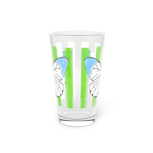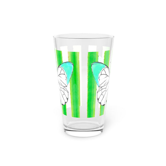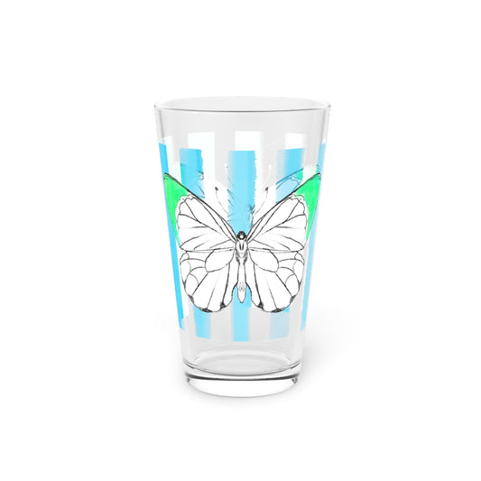 Butterfly Chroma Pint Glass in Aqua with Light Green Stripes, 16oz