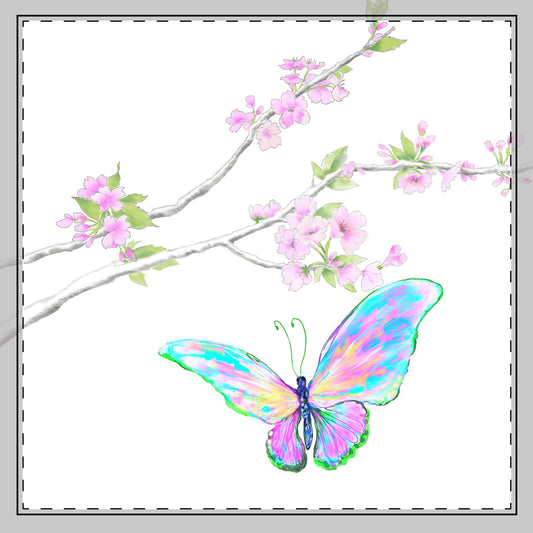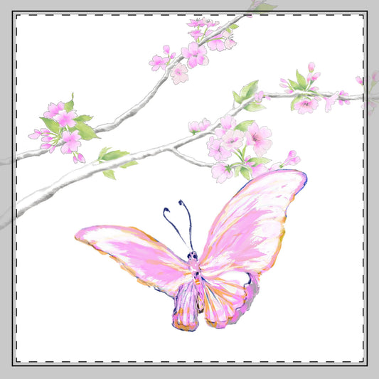 Butterfly Blossom Whirl Poly Twill Napkin, Pink, Fabric Background Bright White, #8