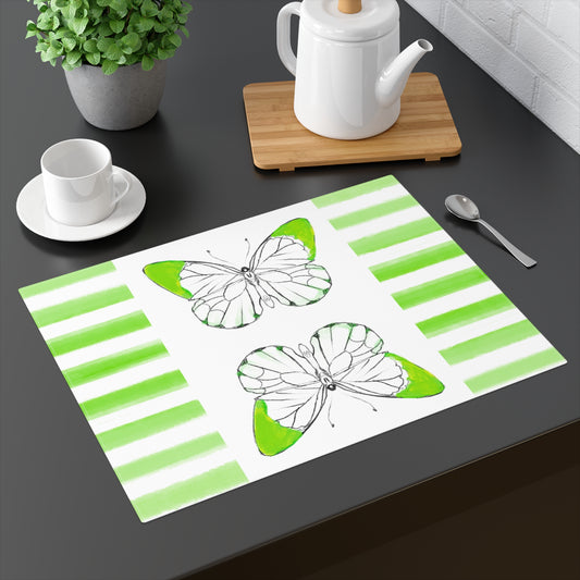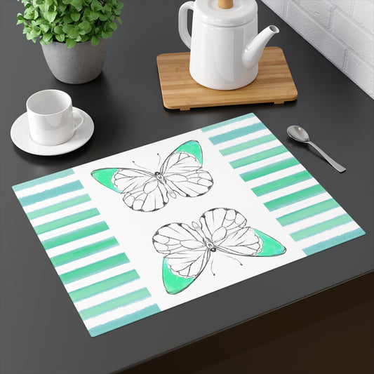 Butterfly Chroma Stripes, Poly Quilted Placemat, Green, Fabric Background Bright White