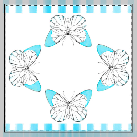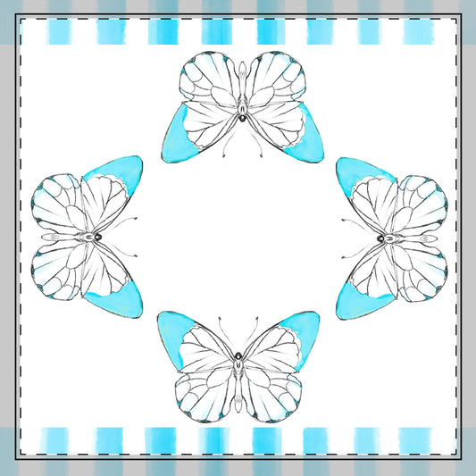 Butterfly Chroma Stripe Placemat, 1pc, Aqua, Cotton, ( Fabric Background Creamy White)
