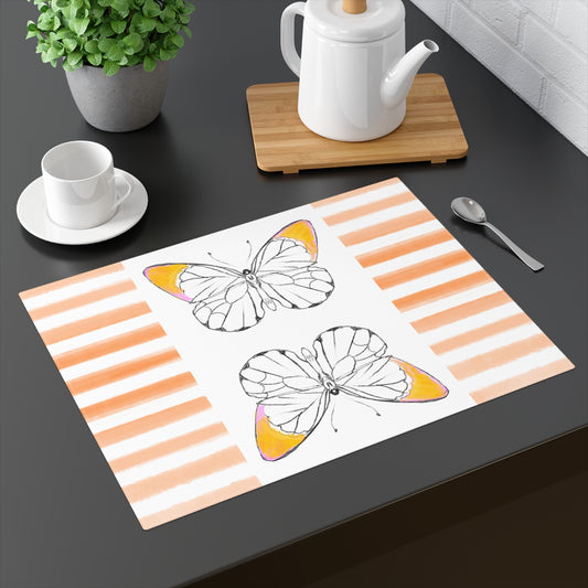 Butterfly Chroma Stripes, Poly Quilted Placemat, Orange, Fabric Background Bright White
