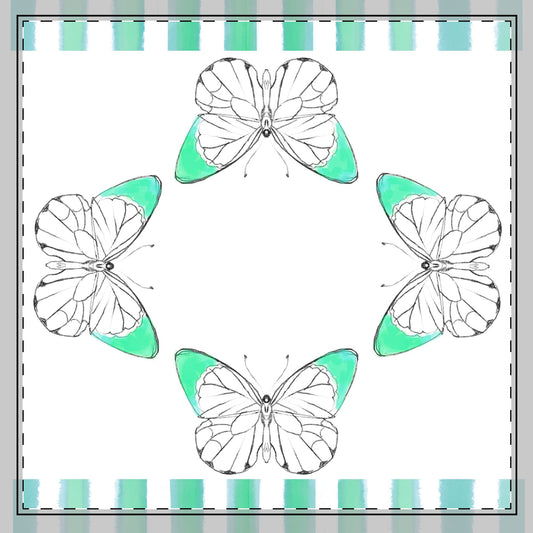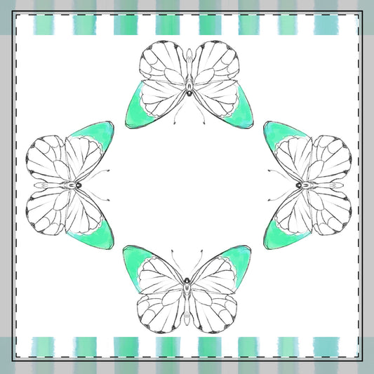 Butterfly Chroma Stripes, Cotton Twill Napkin, Blue Green , Fabric Background Creamy White