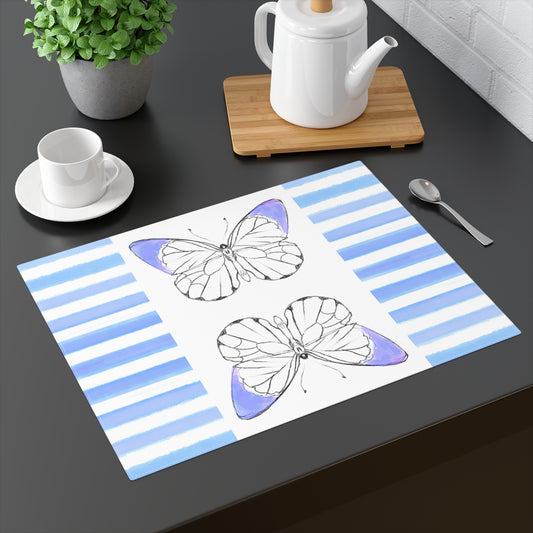 Butterfly Chroma Stripes, Poly Quilted Placemat, Periwinkle Blue, Fabric Background Bright White