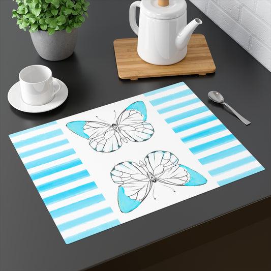 Butterfly Chroma Stripes, Poly Quilted Placemat, Aqua, Fabric Background Bright White