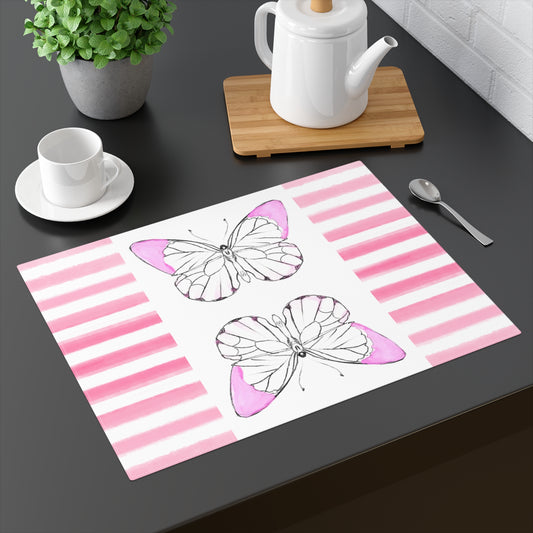 Butterfly Chroma Stripe, Placemat, 1pc, Pink, Cotton, ( Background Color Creamy White)