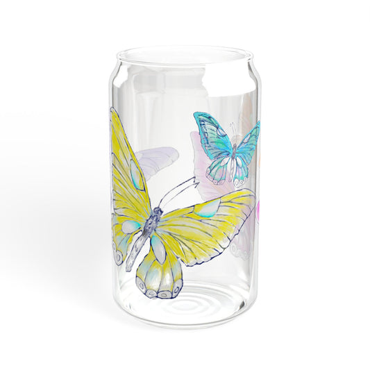 Butterfly Swing, Largest Butterfly is Greenish Yellow, Sipper Glass, 16oz, Choose With or Without lid