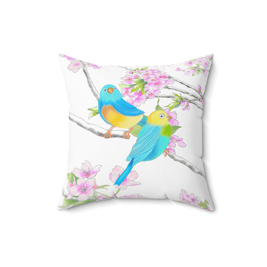 Cherry Chirp Spun Polyester Square Pillow, Multi-color Birds