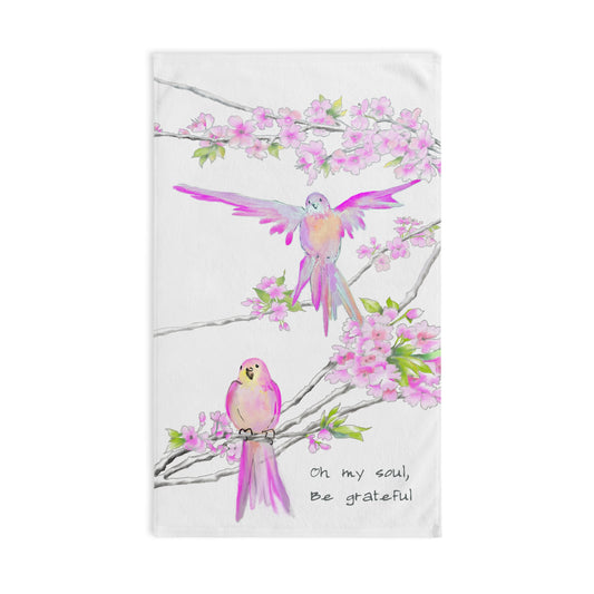 Cherry Chirp Hand Towel Oh my soul Be grateful