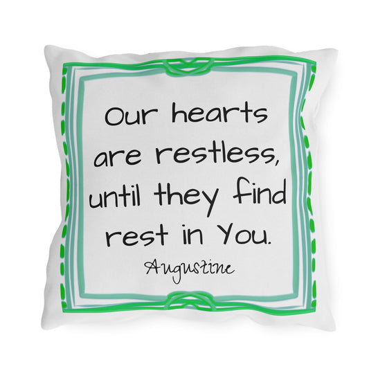 Chroma Outdoor Pillow Lilac "Our hearts are restless..."