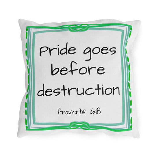Chroma Outdoor Pillow Green "Pride goes before destruction"