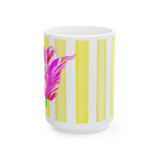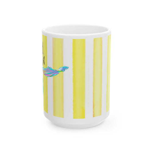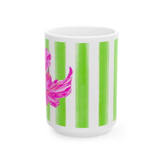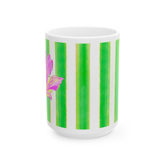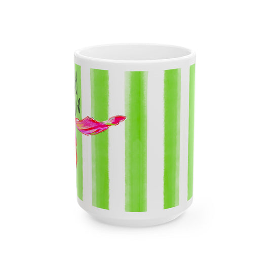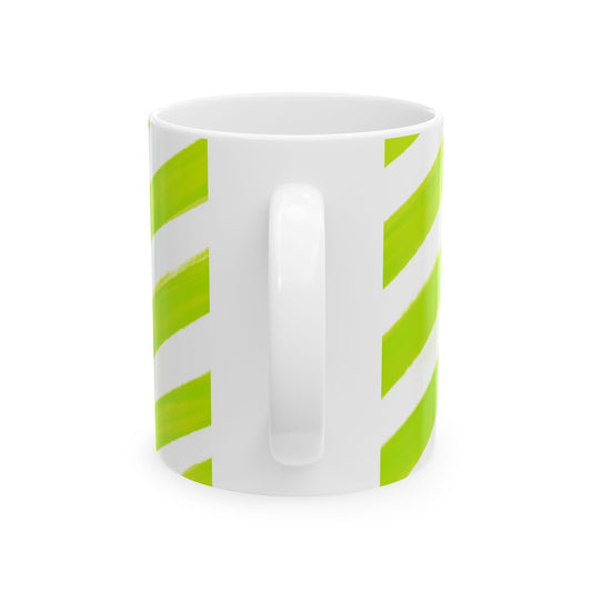 Diagonal Stripe Ceramic Mug in Lime Green, 11oz
