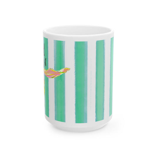 Diagonal Stripe Ceramic Mug in Green Aqua, 11oz