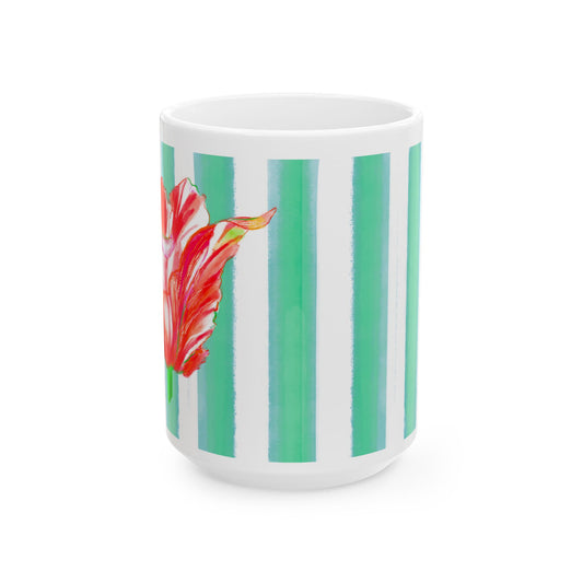 Diagonal Stripe Ceramic Mug in Fresh Green, 11oz