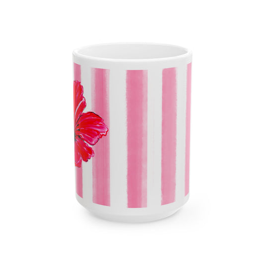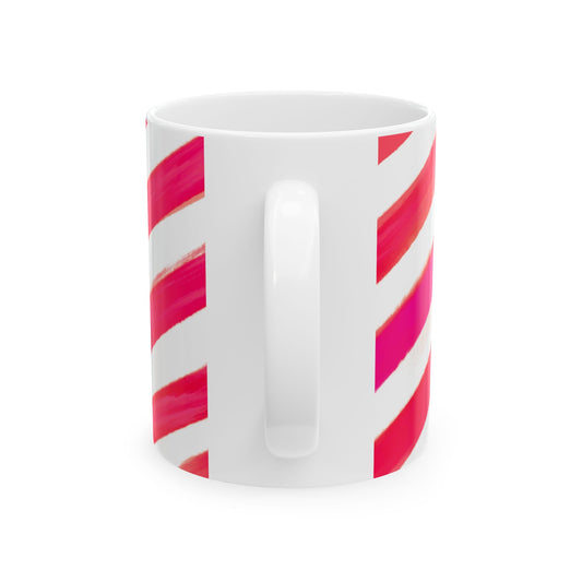 Diagonal Stripe Ceramic Mug in Raspberry Red, 11oz