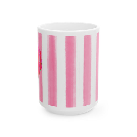 Diagonal Stripe Ceramic Mug in Rose Purple, 11oz