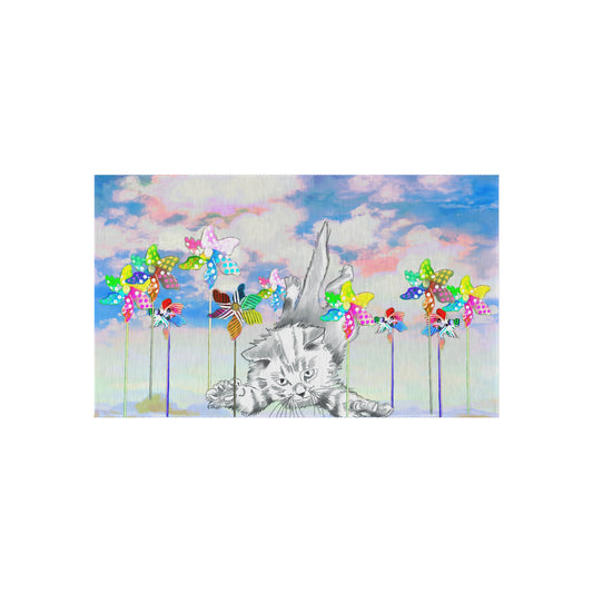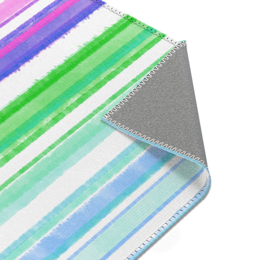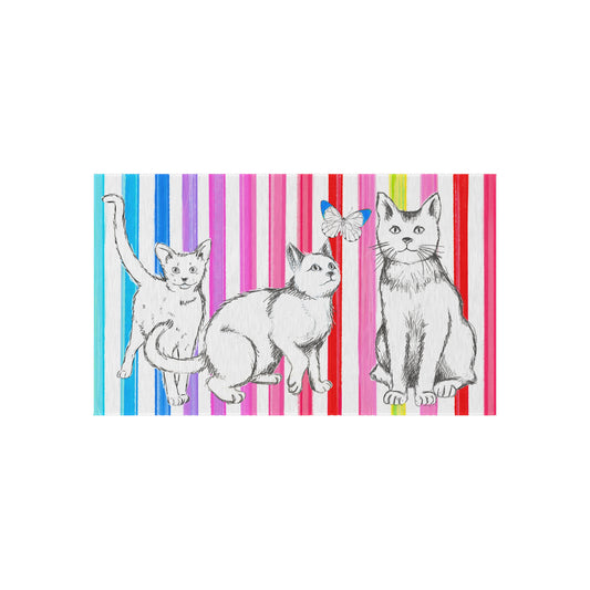 Indoor/Outdoor Rug Cat Fun Rainbow Stripes with Butterfly