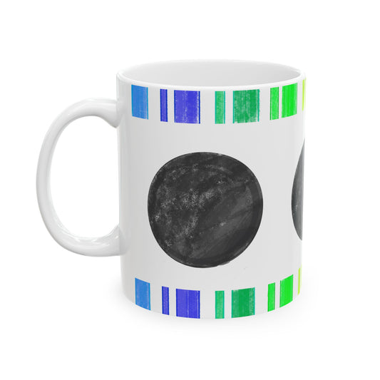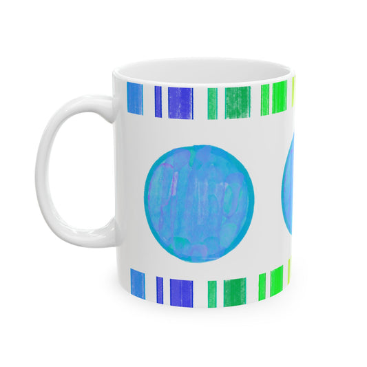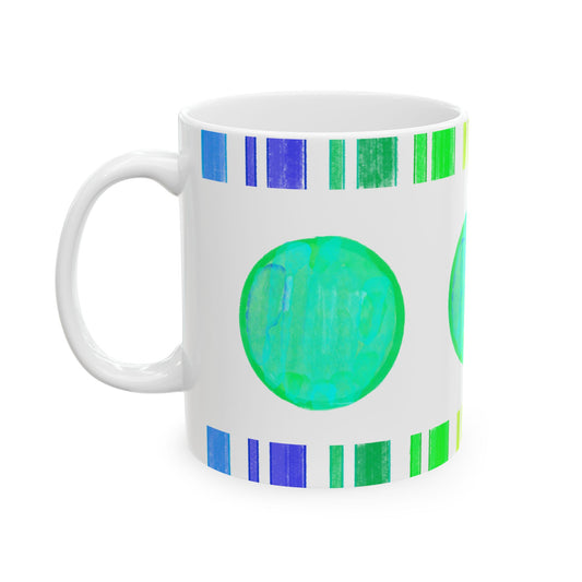 Mega Dot & Stripes Blue Green Ceramic Mug, (11oz, 15oz)