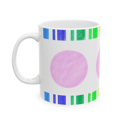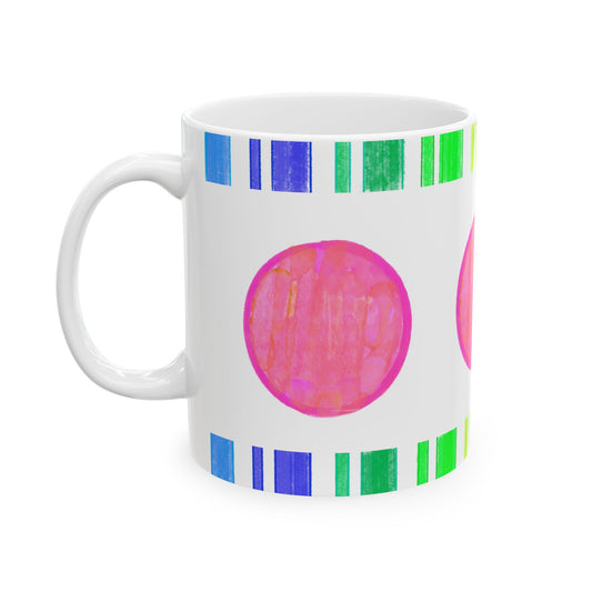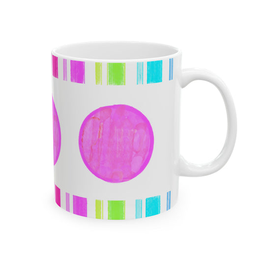 Mega Dot & Stripes Pink Ceramic Mug, (11oz, 15oz)