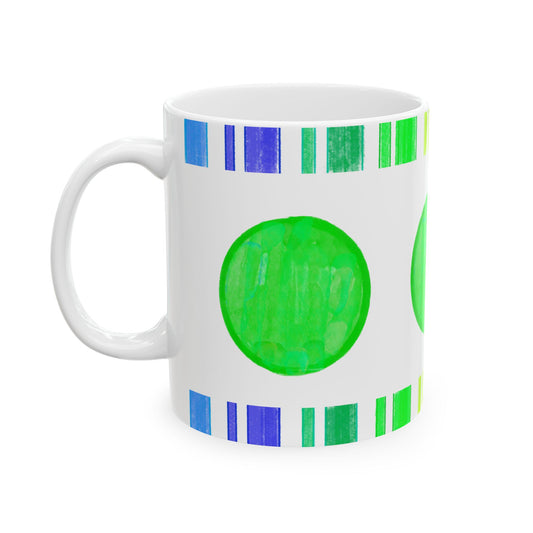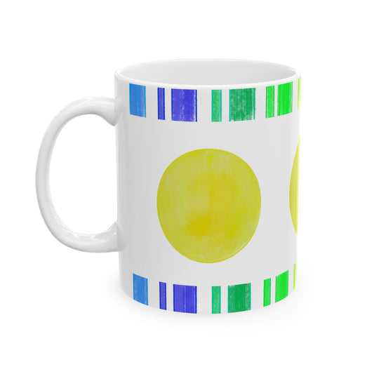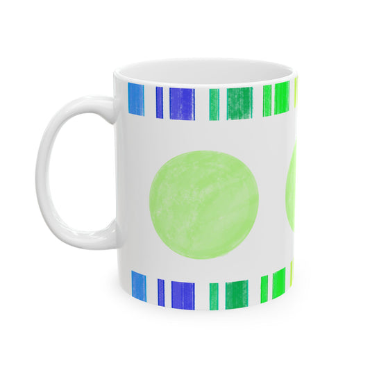 Mega Dot & Stripes Green Yellow Ceramic Mug, (11oz, 15oz)