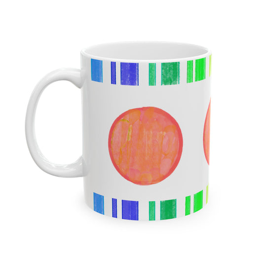 Mega Dot & Stripes Orange Ceramic Mug, (11oz, 15oz)