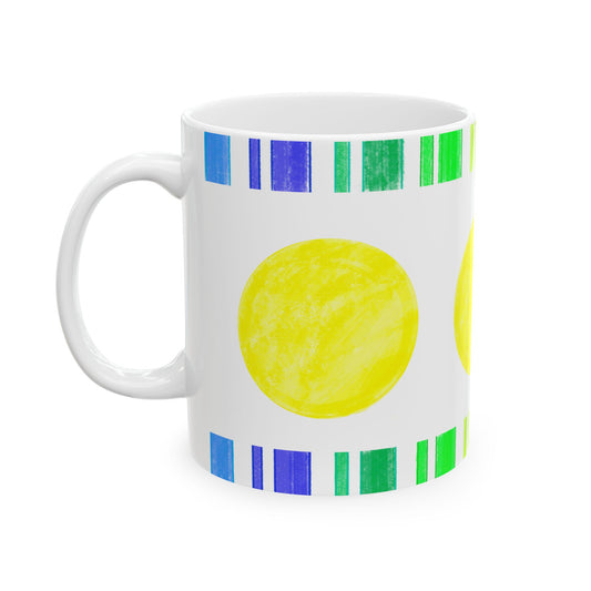 Mega Dot & Stripes Yellow Ceramic Mug, (11oz, 15oz)