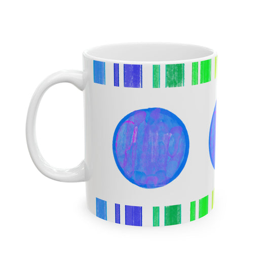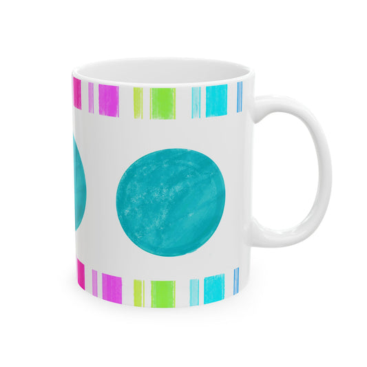 Mega Dot & Stripes Teal Ceramic Mug, (11oz, 15oz)