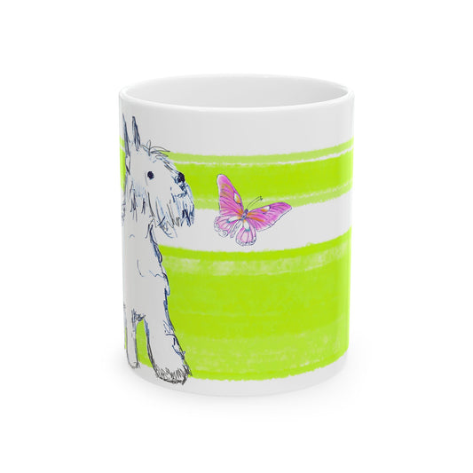 Mega Stripe Dogi Butterfly Flutter Ceramic Mug, (11oz), Lime Schnauzer