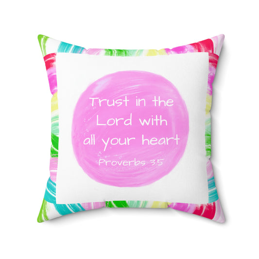 Mega Dot Polyester Square Pillow Trust in the Lord with all your heart Birds