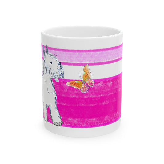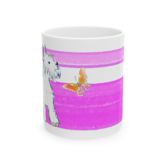 Mega Stripe Dogi Butterfly Flutter Ceramic Mug, (11oz, 15oz), Purplish Pink Schnauzer