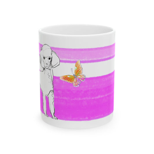 Mega Stripe Dogi Butterfly Flutter Ceramic Mug, (11oz, 15oz), Purplish Pink Poodle