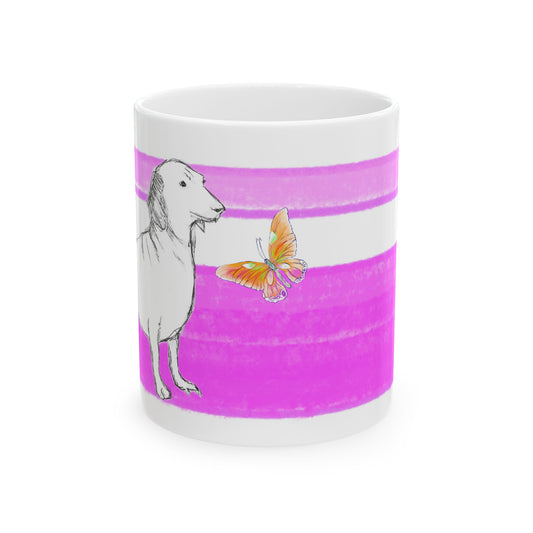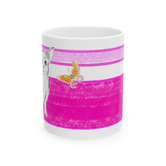 Mega Stripe Dogi Butterfly Flutter Ceramic Mug, (11oz, 15oz), Raspberry Pink Chihuahua