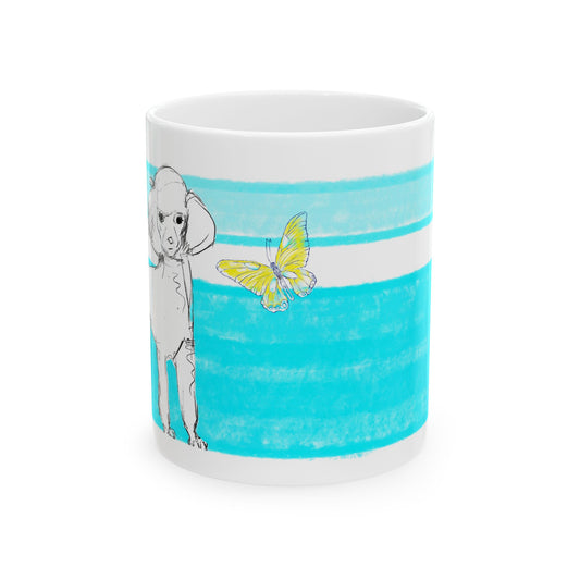 Mega Stripe Dogi Butterfly Flutter Ceramic Mug, (11oz, 15oz), Aqua Poodle