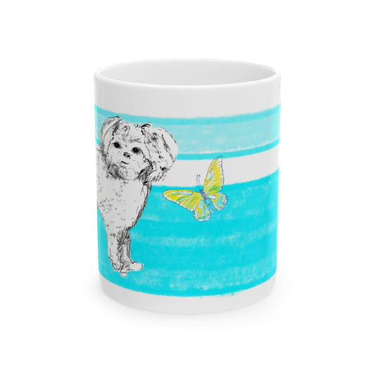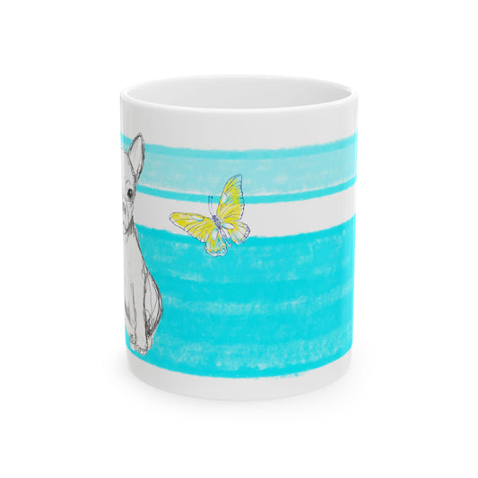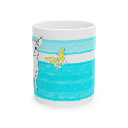 Mega Stripe Dogi Butterfly Flutter Ceramic Mug, (11oz, 15oz), Aqua Chihuahua
